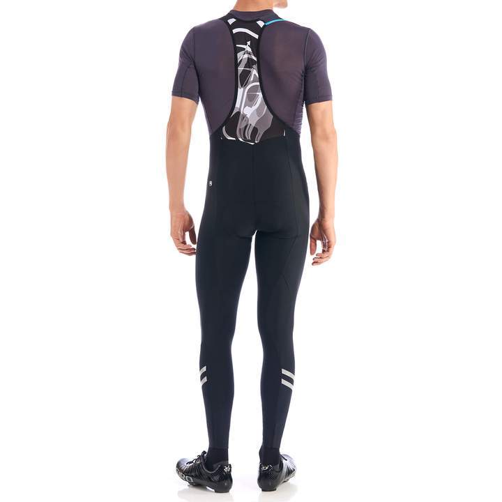 The ankles include internal elastic grippers that help hold tights in place, and the calves of the tights are finished with two large reflectivity stripes that aid in visibility in low-light conditions. The all-black elastic bib uppers include woven G-Shield lettering in bright blue and a mesh panel at the back for breathability and support, while also holding the aloe vera Cirro-S chamois securely in place.